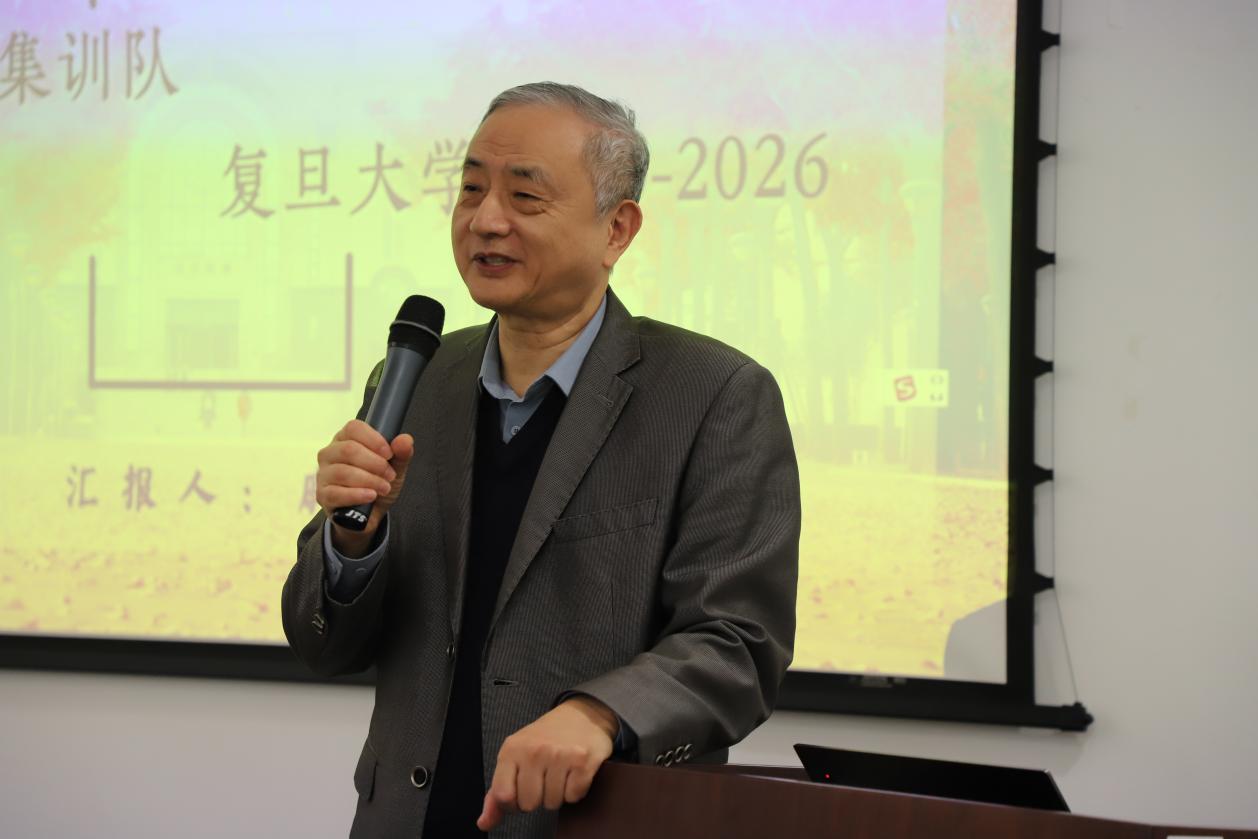 我系党委书记刘召伟老师从历史与概况、理念与特色、实践与创新这三个维度介绍了我系的科研教学情况,这些都将为本次集训提供强有力的软硬件支撑。复旦大学教务处副处长殷立峰教授从学习、生活、运动、文化等方面介绍了学校为队员们提供的全方位的保障措施。最后,集训队总教练戚扬教授介绍了营期的课程安排和注意事项。