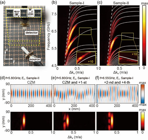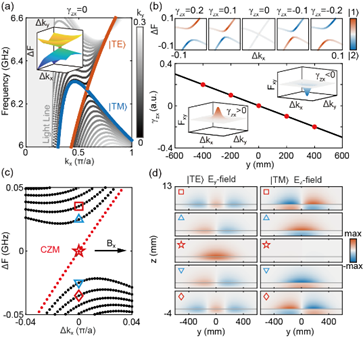 近日,复旦大学物理学系/应用表面物理全国重点实验室周磊教授与复旦大学未来信息创新学院马少杰青年研究员和孙树林研究员合作,在亚波长拓扑电磁超表面领域取得重要进展:团队成功构建了一类(Type-I)狄拉克超表面,基于全新设计,在实验上以前所未有的精度观测到超对称朗道能级(Supersymmetric Landau Levels),并证实了其对表面波的拓扑操控能力。相关成果以“Supersymmetric Landau Levels in Subwavelength Type-I Dirac Metasurfaces”为题发表于《物理评论快报》(Physical Review Letters)上。 狄拉克简并及相关拓扑物态已在电子体系和光子晶体中得到广泛研究,但其实现平台却始终受限于系统的特征尺度:电子体系受制于原子尺度,而光子晶体则依赖波长尺度的周期结构与布拉格散射机制。这种尺度限制不仅使得狄拉克简并态的模式分量在实验上难以被清晰表征,也阻碍了狄拉克物理在深亚波长尺度下的精细调控,进而显著增加了器件设计、制备、测量与系统集成的整体复杂度。 针对上述挑战,团队提出并实验验证了一种全新的狄拉克物理实现平台。通过对亚波长电磁超表面中人工原子的本征电磁响应的精细设计,在不依赖全局空间群对称性的前提下,对TE与TM偏振表面波的色散关系及群速度进行独立调控,使其在高对称线上发生线性交叉,从而实现具有零态密度特征的一类(Type-I)狄拉克简并点,如图1(a)所示。该简并点附近系统的低能响应行为可由二维狄拉克哈密顿量有效描述: 进一步地,通过在空间上引入线性变化的电磁耦合参数γ_zx,可在狄拉克简并点附近诱导位置依赖的有效质量项,该质量项可以被等效视为合成维度中的人工规范场,从而使该体系响应映射到耦合均匀磁场的三维外尔系统,如图1(b)所示。在其情形下,系统响应可由以下哈密顿量进行描述: 由此,系统的本征态被重构为一组超对称朗道能级,具体表现为成对出现的高阶朗道能级以及一个具有确定手性与极化特征的拓扑零模(Chiral Zero Mode, CZM)。模拟结果证实,其电磁场分布特征严格符合超对称朗道能级的理论预期,如图1(c-d)所示。 图1.基于有效媒质理论的超对称朗道能级 实验方面,在有效媒质理论的指导下,本文设计并制备了一种金属-介质-金属(MIM)结构的电磁超表面。对于单个结构单元,通过调节通孔在单元结构中的位置,可以实现TE和TM模式的可控耦合,从而引入局域可调的γ_zx参数。在此基础上,研究团队制备了两组非均匀超表面样品,通过沿y方向线性调节单元结构的γ_zx参数,实现了人工规范场的可控空间分布,从而在简并系统中引入了不同方向的等效磁场。通过近场扫描对TE和TM偏振表面波的电磁场分布的精确测量,研究团队成功捕捉到了超对称朗道能级在的特征本征态,整体实验框架与主要结果如图2所示。测量结果表明,两组超表面样品的色散谱中等效磁场的方向差别仅体现在CZM的传播方向上,与理论预期完全吻合。在特定频率下,CZM在样品中心形成呈高斯分布的局域传播态;在其他频率条件下,多阶模式同时被激发,产生较为复杂的干涉条纹,但各传播模在动量空间中仍清晰可见,其场分布严格遵循相应阶次的厄米–高斯模式,且在TE和TM模式下阶次相差恒定为1。这些实验特征正是超对称朗道能级的典型标志,充分验证了该超表面平台在二维拓扑纳米光子学中实现相对论量子效应模拟可行性与可靠性。 图2. 超表面系统中超对称朗道能级的典型测量结果 与此同时,相关手征拓扑模式可用于实现低插损且兼具拓扑鲁棒性的表面波传输控制。研究团队通过对人工规范场空间分布的可控调制,在三组样品分别实现了表面波的弯折、聚焦和发散,如图3所示,充分展示了拓扑超表面对表面波的精准空间调控能力及其潜在的器件应用价值。 图3. 表面波传播行为的拓扑调控结果 该工作提出并验证了一种通过亚波长超表面实现一类狄拉克简并点的方法。通过非均匀超表面引入人工规范场,在深亚波长尺度下实现了对超对称朗道能级模式的精确表征,同时得益于系统的高度可控性,实现了对表面波传播行为的拓扑调控。该方法突破了传统六角光子晶体的尺度限制,为二维光子体系中的拓扑物理研究与器件应用开辟了新路径。未来,通过结合磁光材料或米共振设计,该方法可拓展为光学陈绝缘体,并延伸至更高频段。 我系博士生徐一凯和未来信息创新学院博士生袁仪为该论文的共同第一作者。周磊教授、马少杰研究员和孙树林研究院是该论文的共同通讯作者。该研究得到了国家重点研发计划、国家自然科学基金、上海市科委及复旦大学启动基金的资助。 论文链接:https://doi.org/10.1103/k8br-gsfg https://mp.weixin.qq.com/s/f60-W_q9Af8AlWBzzgOSsg![]()